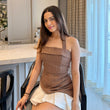 AUDREY TWEED TOP BROWN