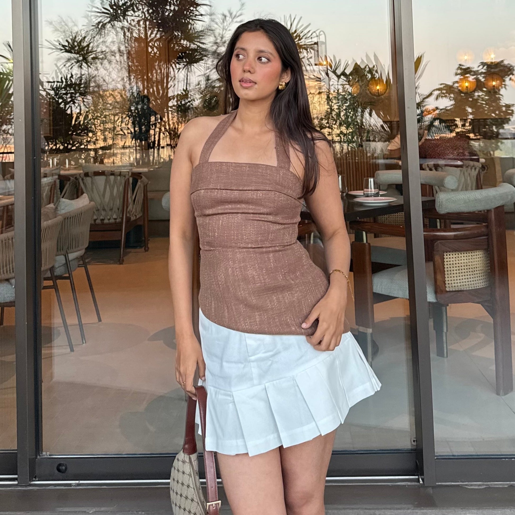 Audrey Tweed Top Brown + Sia Skirt